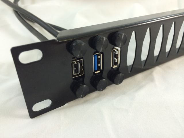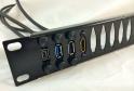 1U vented blank insert with cable mounting. This plate can fit to a standard 1U space as a vented blank or each of the vents will accomodate one of the cables we offer. Compatible with USB, USB 3.0, HDMI (Firewire 800 coming soon) The cable inserts are sold separately.