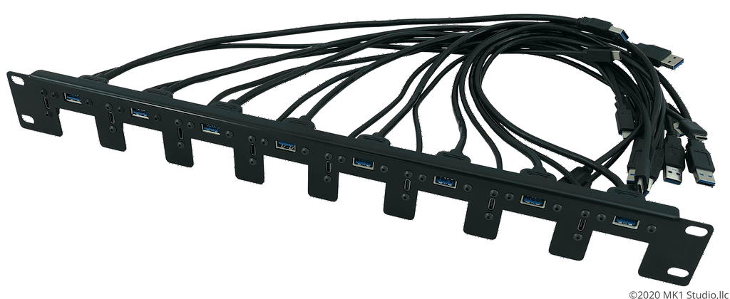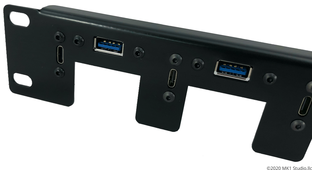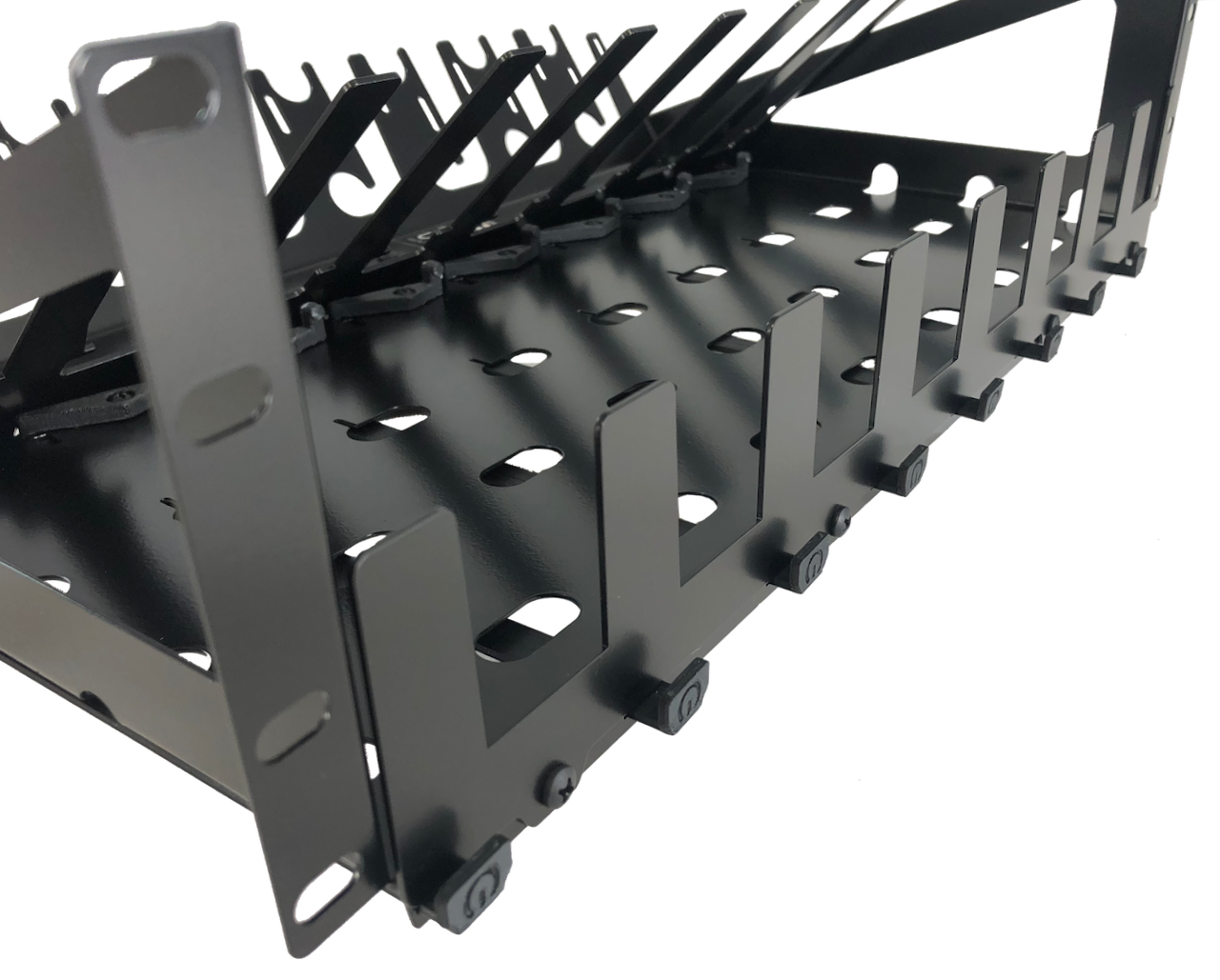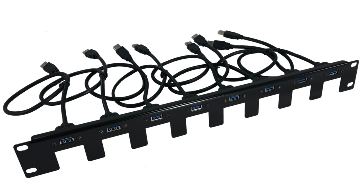 The fixed 5 unit standard 19” nema rack Mac mini Rack adaptor holds up to eight of all Unibody versions of the Apple Mac minis. The fixed 5U comes with an individual unique plate on the rear of the rack that allows for cables to be wound and secured keeping wiring easy to manage and decluttered on a per rack basis. Each fixed 5U comes with a plate that acts as the 5th unit of space and keeps the Mac minis secure within the rack, without obscuring the face of the Mac minis. The plate attaches with four simple rack screws allowing for quick removal of the plate and individual minis without having to remove the entire fixed 5U. Coupled with convenient wire management this makes swapping Mac minis in and out a breeze. By keeping the face of the Mac mini unobstructed it allows fresh air directly to each of the eight minis creating better cooling; as well as holes ported on the bottom of the fixed 5U rack allows air to flow freely through the entire cabinet. Each fixed 5U has the option of a power switch toggle upgrade. This upgrade gives each individual Mac mini a power switch toggle that allows the mini’s power to be pressed from the front of the rack without any disassembly. Each fixed 5U also has the option to add USB 3.0 cables installed to the included 5th Unit plate, creating quick access to USB slots without removing the rack. The fixed 5U offers up to sixty four Mac minis per typical 42U cabinet with 2U still remaining free. Rack affixation hardware included (10-32 rack screws.)